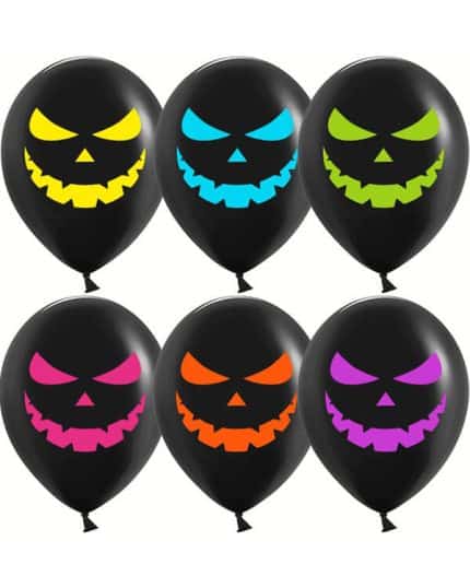 Одним из основных элементов декора на Хэллоуин являются шары в виде нарисованных на них ужасающих лиц, черепов, пауков и других монстров. Также популярны шары с изображением призраков, вампиров, зомби и других существ, связанных с мистикой и ужасами.