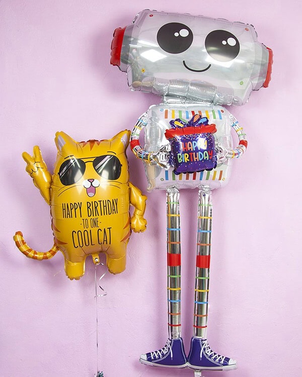 Фольгированный воздушный шар в виде фигуры. Имеет встроенный клапан. Приспособлен под гелий. Фольгированные воздушные шары изготавливаются из тонкой миларовой пленки, позволяющей шару не сдуваться в течении нескольких дней.